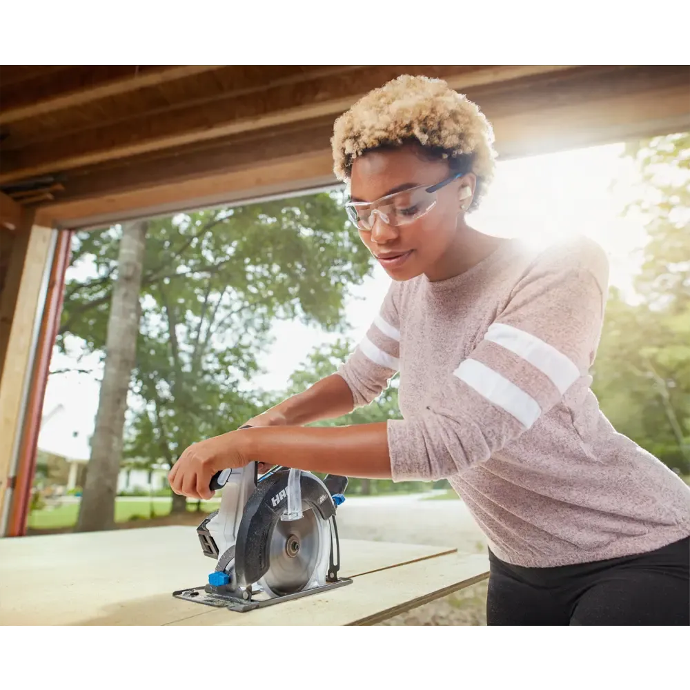 The HART 20V 6-1/2″ Circular Saw is a powerhouse tool equipped with a 4,700 RPM motor, making even the toughest cuts a breeze. The included 24T carbide-tipped, thin-kerf blade ensures fast and accurate cuts every time. With a 0-56° bevel range, the saw offers a wider range of angled cutting options and its 5/8″ arbor accommodates most common blades.