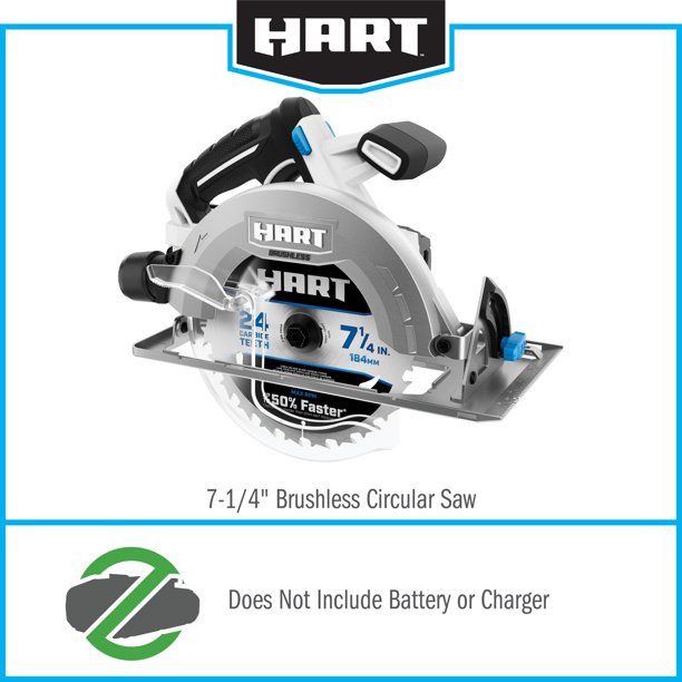 - At walmart.com you can purchase HART 20-Volt Brushless 7-1/4 Inch Circular Saw (Battery Not Included) for only $75.66