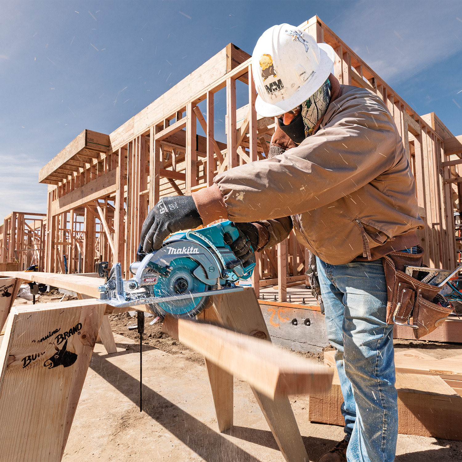 The GSR01M1 is a 40V max XGT® Brushless Rear Handle 7-1/4” Circular Saw Kit that is perfect for framers, builders, roofers, forming, and more. It is cordless and has a powerful Makita-built brushless motor that delivers high-speed cutting performance at 6,400 RPM. The saw has a large cutting capacity of 2-9/16″ and can cut 3X material in a single pass.