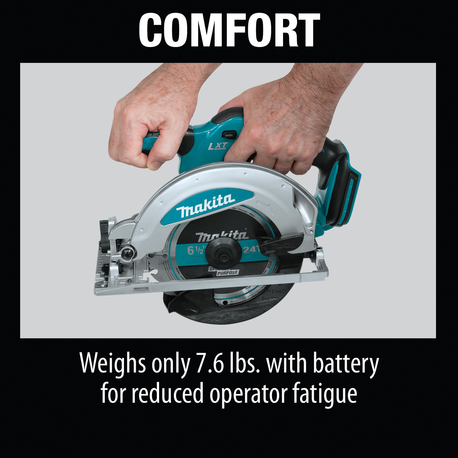 - Weighs 7.6 lbs. (battery not included) for reduced operator fatigue