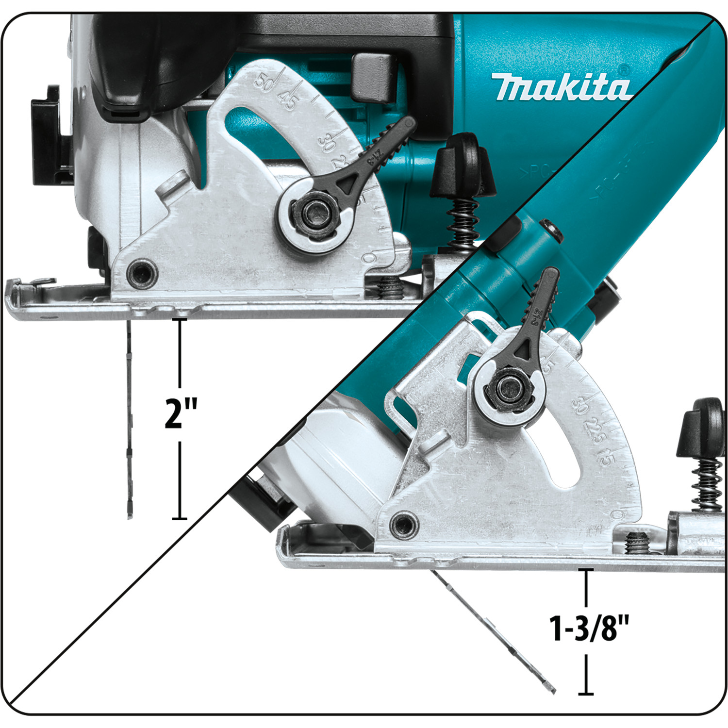 The XSS03Z boasts a high-torque motor that generates 3,600 RPM for swift cutting, and has a 50-degree maximum bevel cutting capacity. The saw is engineered with a stainless steel base plate for smooth, accurate cuts and increased durability.