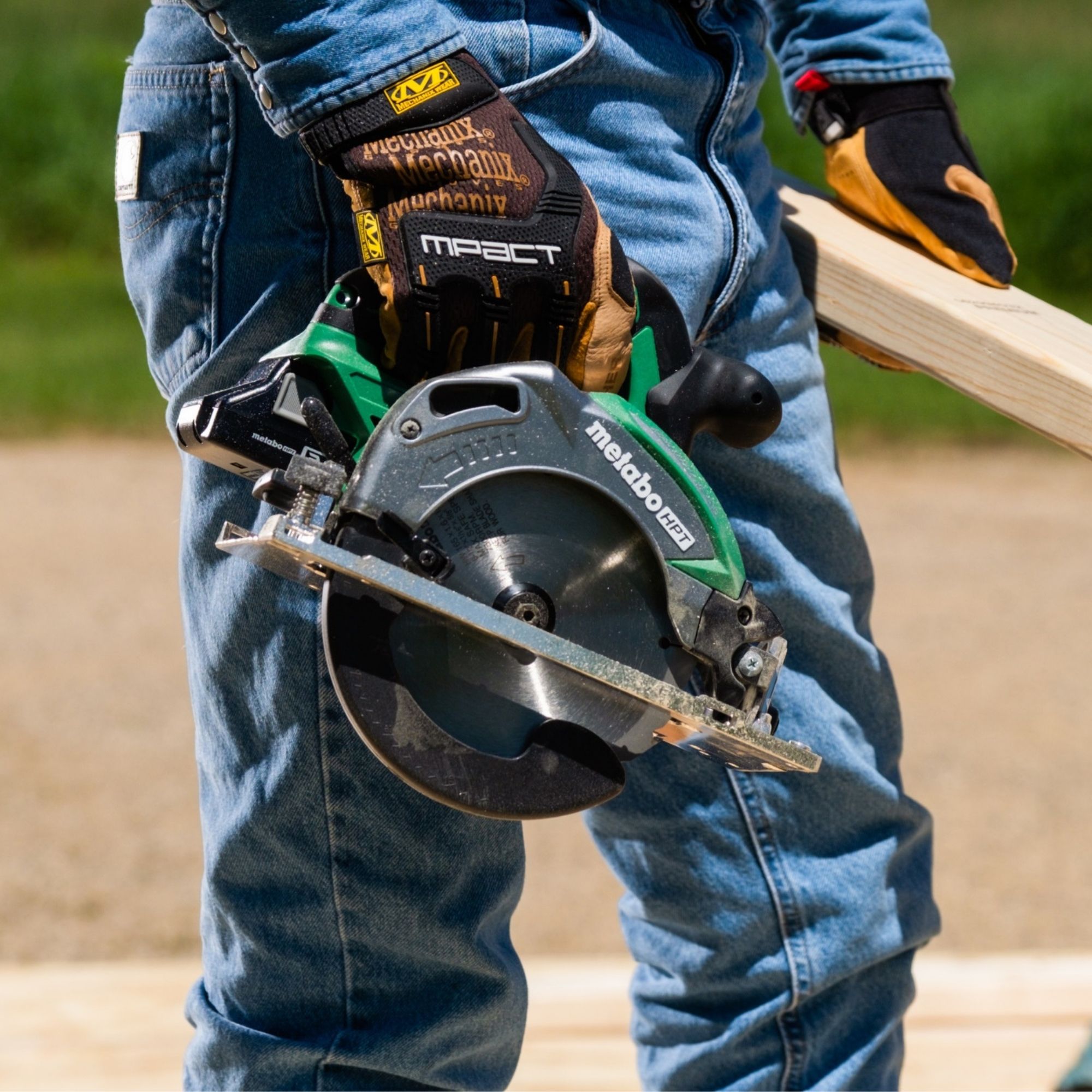 The C18DBALQ4 is a cordless circular saw that features an 18V Brushless Lithium Ion motor and a 6-1/2″ blade with a cutting depth of up to 2-19/32″, which is comparable to a 7-1/4″ saw. This saw offers power, precision, and convenience while also reducing size and weight through the use of a brushless motor. The C18DBALQ4 comes as a tool body only and is compatible with Metabo HPT’s 18V slide type Lithium Ion batteries (sold separately). Additionally, this saw has a built-in spotlight, an electric brake, and a no-load speed of 4,100 RPM.